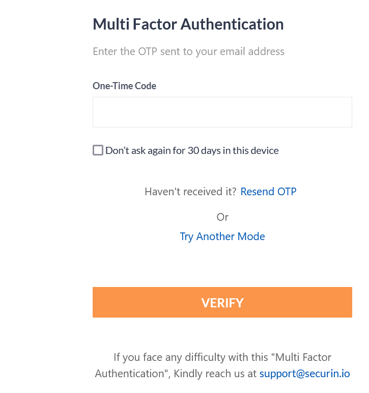 Multi-factor authentication (MFA) has been enabled while logging into the Securin platform to ensure that only authorized persons access the platform.